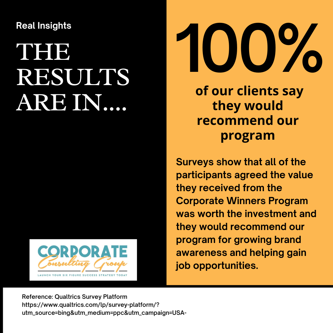Ready to take control of your career and build the brand that sets you apart? The Corporate Winners™ Program was designed to help professionals like you develop a powerful personal brand, increase job opportunities, and maximize earning potential with proven strategies and tools.